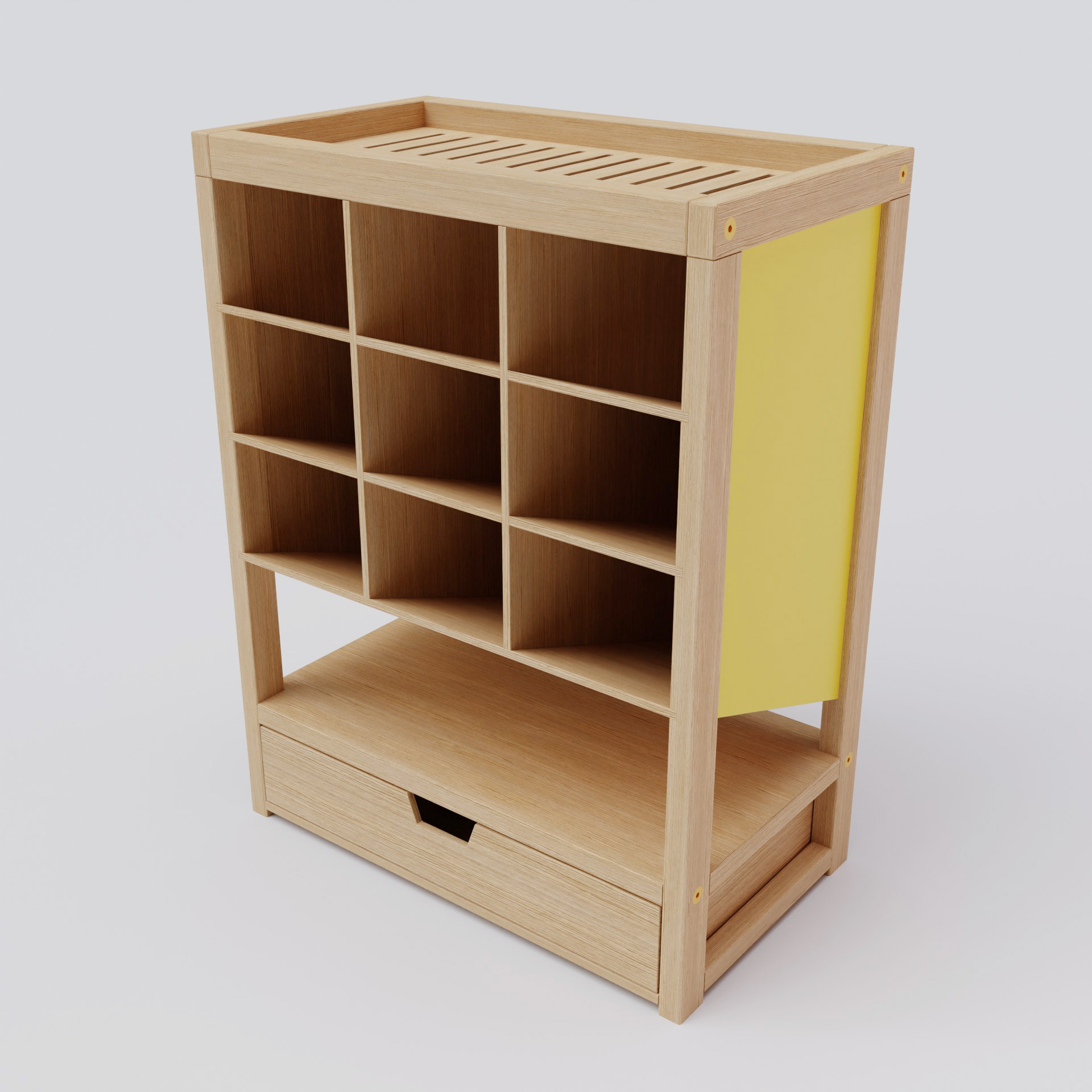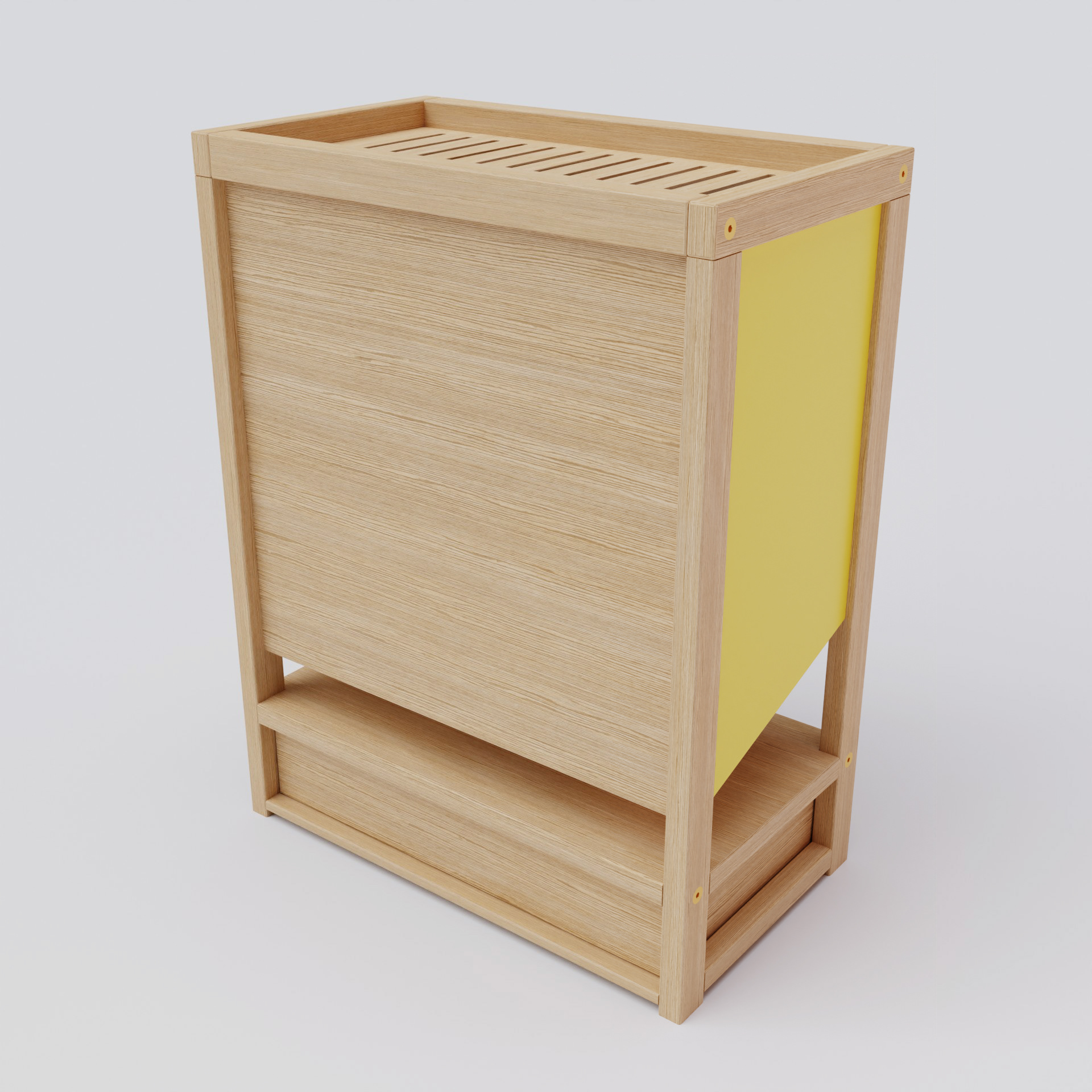Design of a bamboo pen holder. A simple and functional product with multiple storage spaces for drawing materials. I did this project for a private client, and the deliverables included renders and manufacturing drawings.